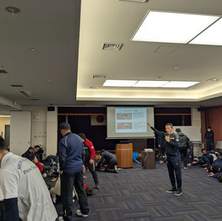 今回もWBSC U-18 ベースボールW杯への帯同経験もある理学療法士の堀口幸二先生をお招きし、障害予防に関する講演だけでなく、ワークショップも実施し、肩や肘、体幹、股関節を中心に実技も踏まえてコンディショニング面での多くのアドバイスをいただきました。